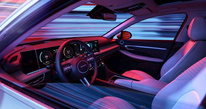 Значительные изменения также произошли внутри салона, где Sonata 2024 года стала первым Hyundai, получившим изящный изогнутый дисплей вроде BMW iDrive 8. 12,3-дюймовая цифровая приборная панель вместе с сенсорным экраном информационно-развлекательной системы такого же размера заключена в одно целое.