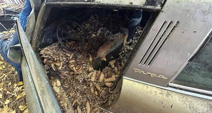 Автомобиль был найден в американском штате Айдахо, буквально похороненным под сосновыми шишками. Его кузов погрузился в землю, а салон превратился в убежище для белок. По словам нового владельца, Марка Марзуки, Porsche стоял в этом месте более 31 года, всего в нескольких метрах от его офиса.
