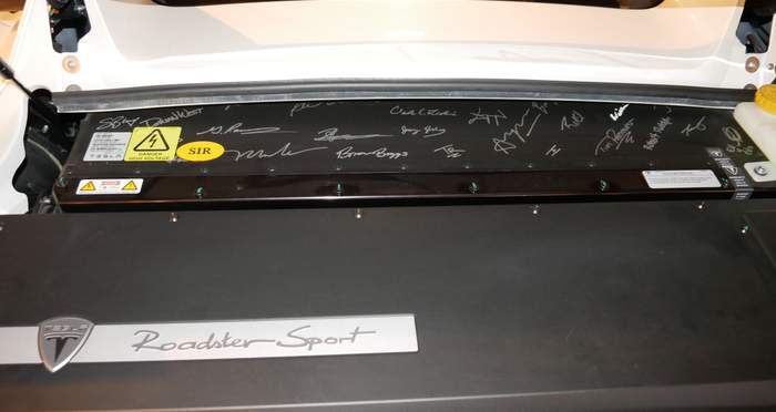 Владелец белого электрокара из Швейцарии утверждает, что его Tesla Roadster – последний из последних и рассчитывает получить за свой электрокар 1 390 000 франков – около 1,3 млн евро. Между креслами родстера есть табличка с надписью, на которой сказано, что данный экземпляр автомобиля является четвертым из четырех машин серии Roadster Sport Final Edition для Европы.