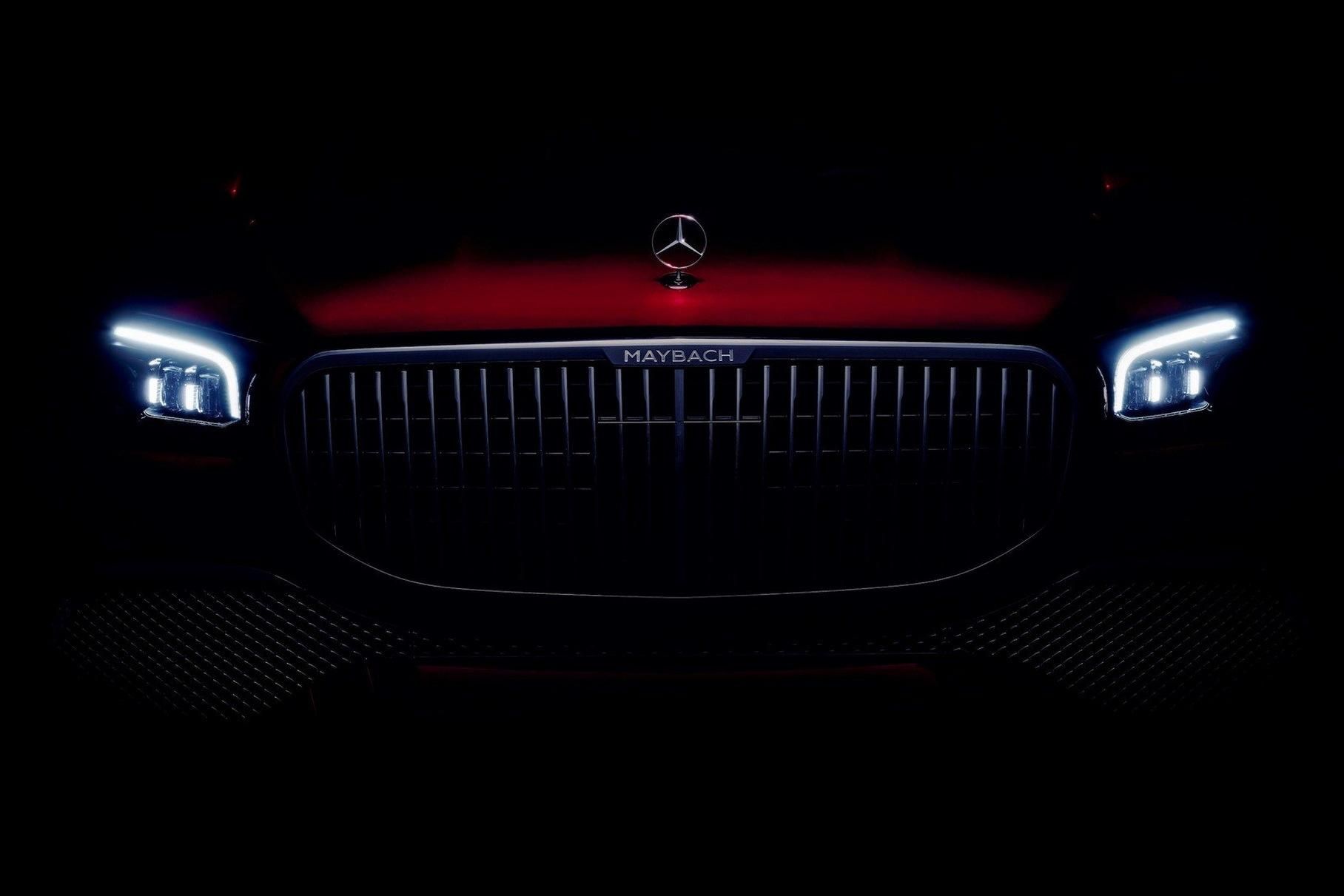Накануне премьеры Mercedes-Maybach GLS производитель публикует затемненный снимок носовой части внедорожника. От обычного GLS роскошная версия будет отличаться радиаторной решеткой с вертикальными ламелями, оригинальным передним бампером с серебристой структурой и выступающей трехлучевой звездой на капоте.