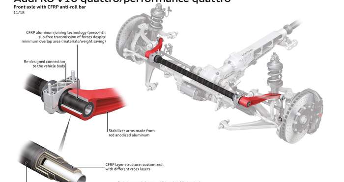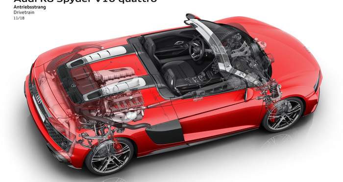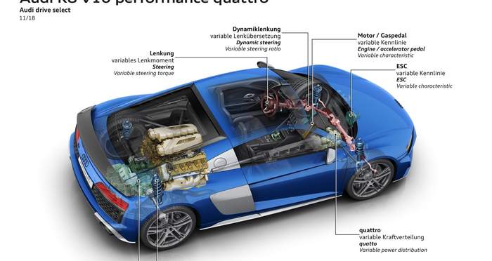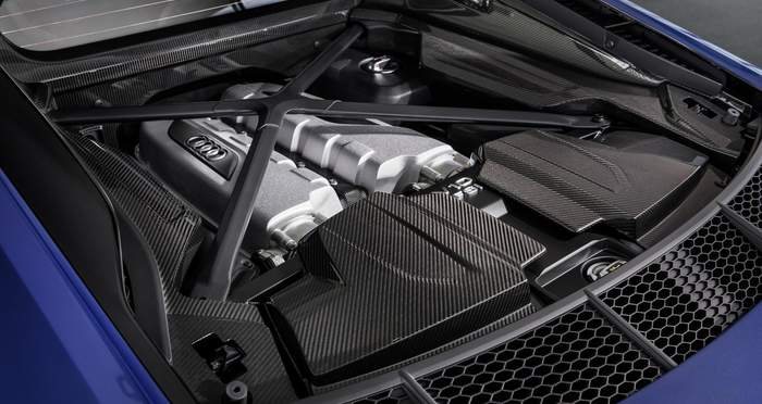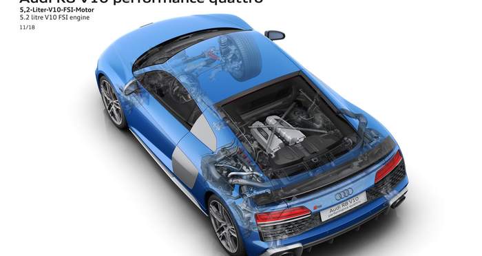 Модель сохранила проверенный временем V10, производительность которого улучшили на 30 лошадиных сил в базовой версии (до 569 л. с.), и на 9 л. с. в исполнении V10 Performance Quattro – 620 л. с. Последняя разгоняется от 0 до 100 км/ч за 3,1 секунды, а базовая модель делает это за 3,5 секунды.