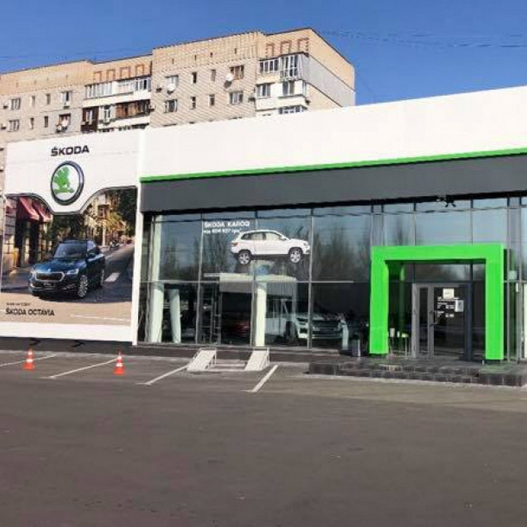 Даже прямой ракетный удар не заставил предприятие прекратить работу. Меньше чем через месяц официальный дилер Skoda “Интеравто-Плюс” открылся по новому адресу.