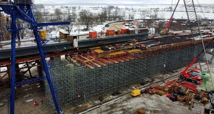 Ожидается, что мост введут в эксплуатацию в нынешнем году. В настоящее время производится надвижка второй ветки металлического пролетного строения – держатель конструкции моста. Для этого пустили в действие аванбек – направляющую консольную конструкцию.