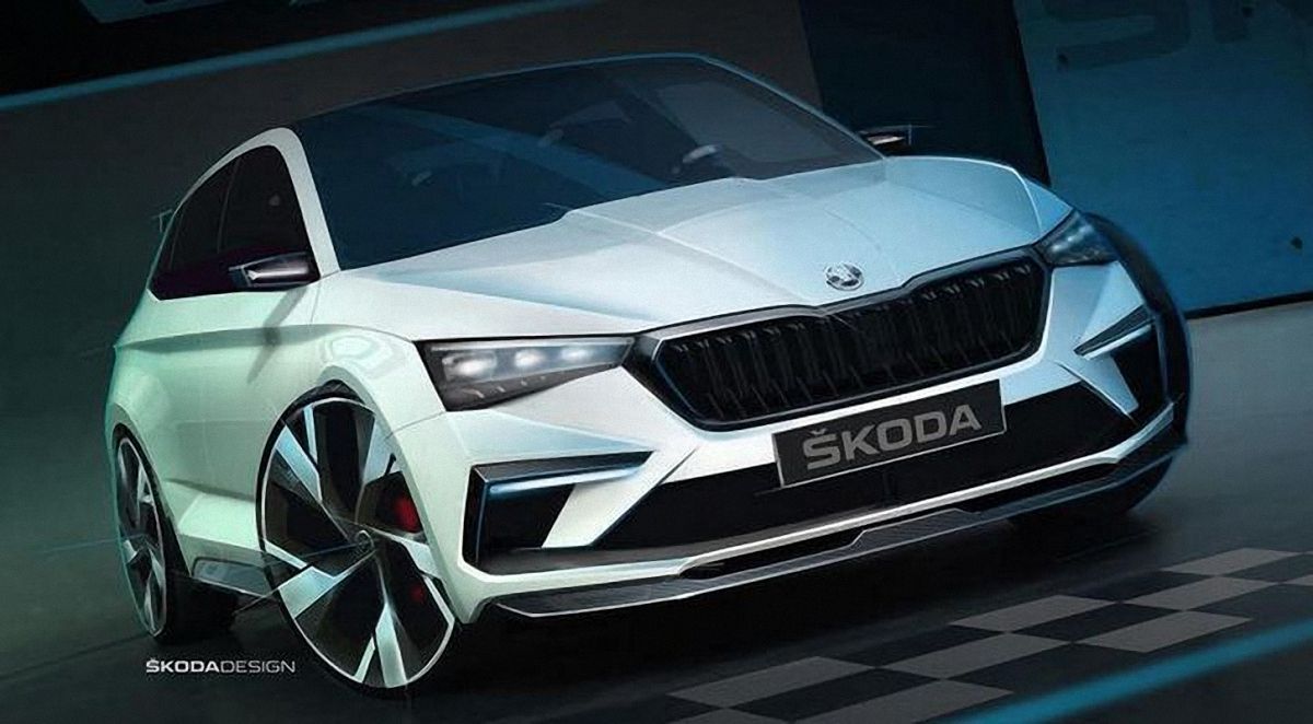 Skoda обнародовала несколько изображений 245-сильного гибридного последователя нового горячего хэтчбека Rapid RS в виде концепта Vision RS.
