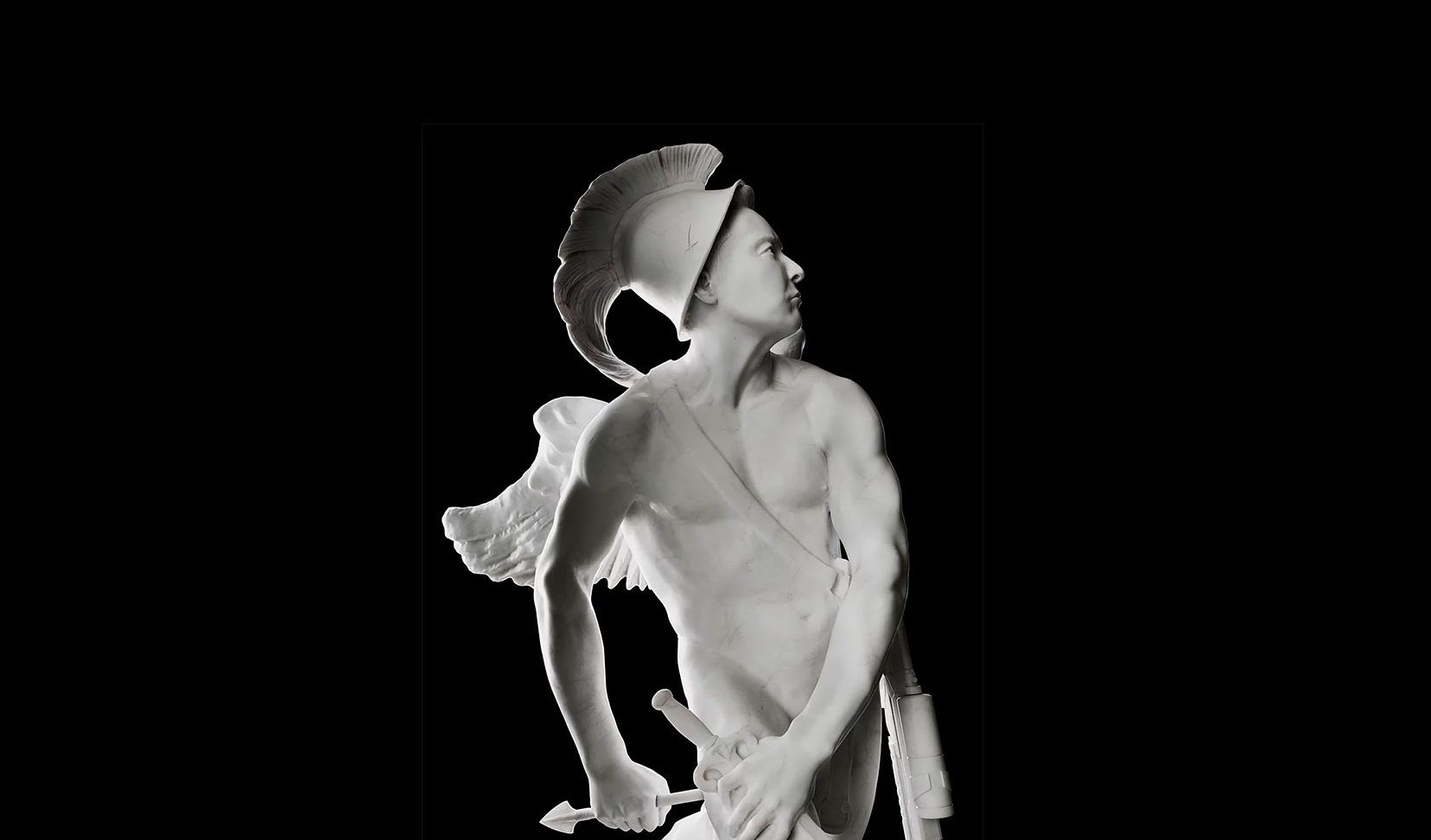 Илон Маск в скульптуре Эрразуриса представл в образе древнеримского бога Марса. К классическому образу с легионерским шлемом и ангельскими крыльями Себастьян добавил одну важную деталь из нашей эпохи – огнемет Flamethrower от компании Илона Маска Boring Company.