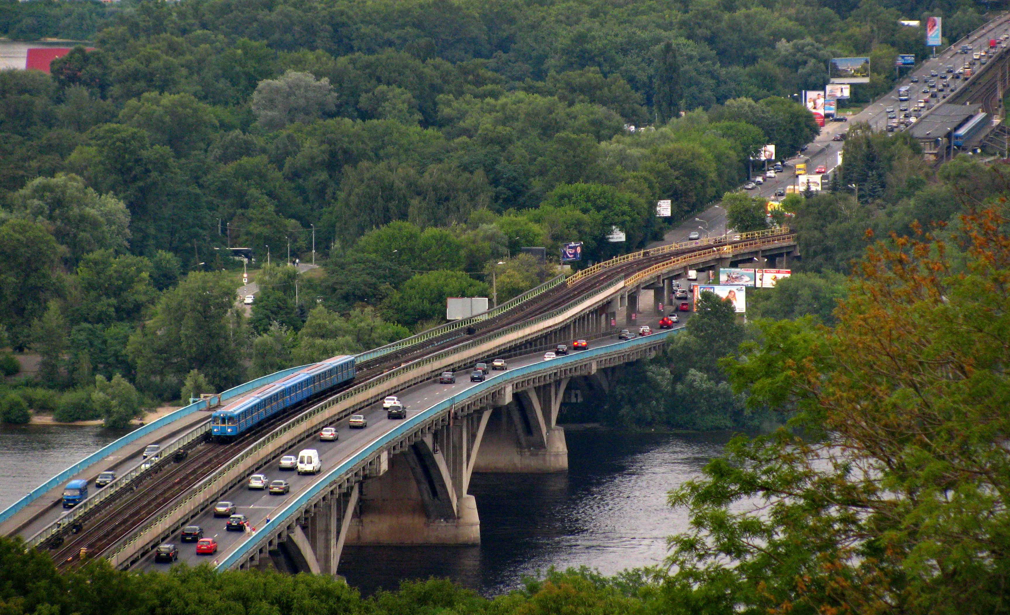 Сейчас завершены работы второго этапа (полосы движения в направлении левого берега). Выполнен демонтаж существующей конструкции дорожной одежды, гидроизоляции, старого сточного треугольника и конструкций тротуаров. Завершены работы по армированию и бетонированию новой монолитной плиты, установлены и омоноличены деформационные швы, восстановлены конструкции тротуаров и бортового камня, заменены опоры освещения. Восстановлены гранитные лестничные марши на подходах к мосту, выполняется ремонт откосов и дамб, ограждения, конструктивных элементов опор, ригелей и пролетного строения под мостом. Устроено гидроизоляцию и покрытие из гусасфальта. Продолжаются работы по монтажу полужесткого барьерного ограждения.