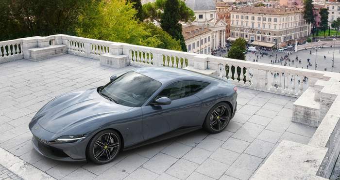 Ferrari Roma – суперкар начального уровня, наиболее доступный автомобиль итальянского бренда. Впервые был показан в 2019 году. Построенный на базе кабриолета Portofino, имеет всего два полноценных места. В движение Roma приводит 3,9-литровый V8 с двойным наддувом, который выдает 620 л. и 760 Нм крутящего момента. Коробка передач – 8-ступенчатый преселективный "робот" производства Magna. Разгоняется Ferrari Roma за 3,4 с до первых 100 км/ч и за 9,3 с – до 200 км/ч. Максимальная скорость составляет 320 км/ч.