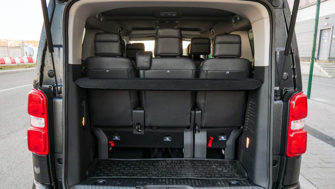 Toyota Proace Verso может быть очень просторным шаттлом и для двух пассажиров на втором ряду. Кресла сдвигаются, оставляя слишком много места для ног. Справится этот автомобиль и с ролью мобильного офиса – кресла можно развернуть спиной к движению. Удобный раскладной столик прекрасно подходит для нескольких ноутбуков. Здесь даже предусмотрена розетка на 220 вольт.