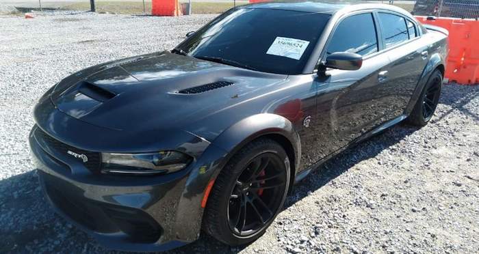 Dodge Charger SRT Hellcat Widebody, который выставлен на аукцион – это 4-дверный седан цвета "мокрый асфальт". Под капотом у него – восьмицилиндровый 6,2-литровый двигатель Supercharged HEMI V8 SRT. На вид у машины нет повреждений, красивый коричневый кожаный салон, есть ключ. На одометре у Dodge всего 9,7 тысяч миль (около 15 тысяч км), произведен он в 2021 году.