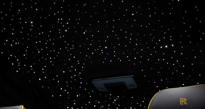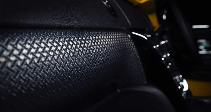 Интерьер украшен “трехмерным” карбоном с фактурным принтом, кожей цвета Forged Yellow, а потолок украшает светодиодная инсталляция “Звездное небо”, которая доступна в качестве дополнительной опции.