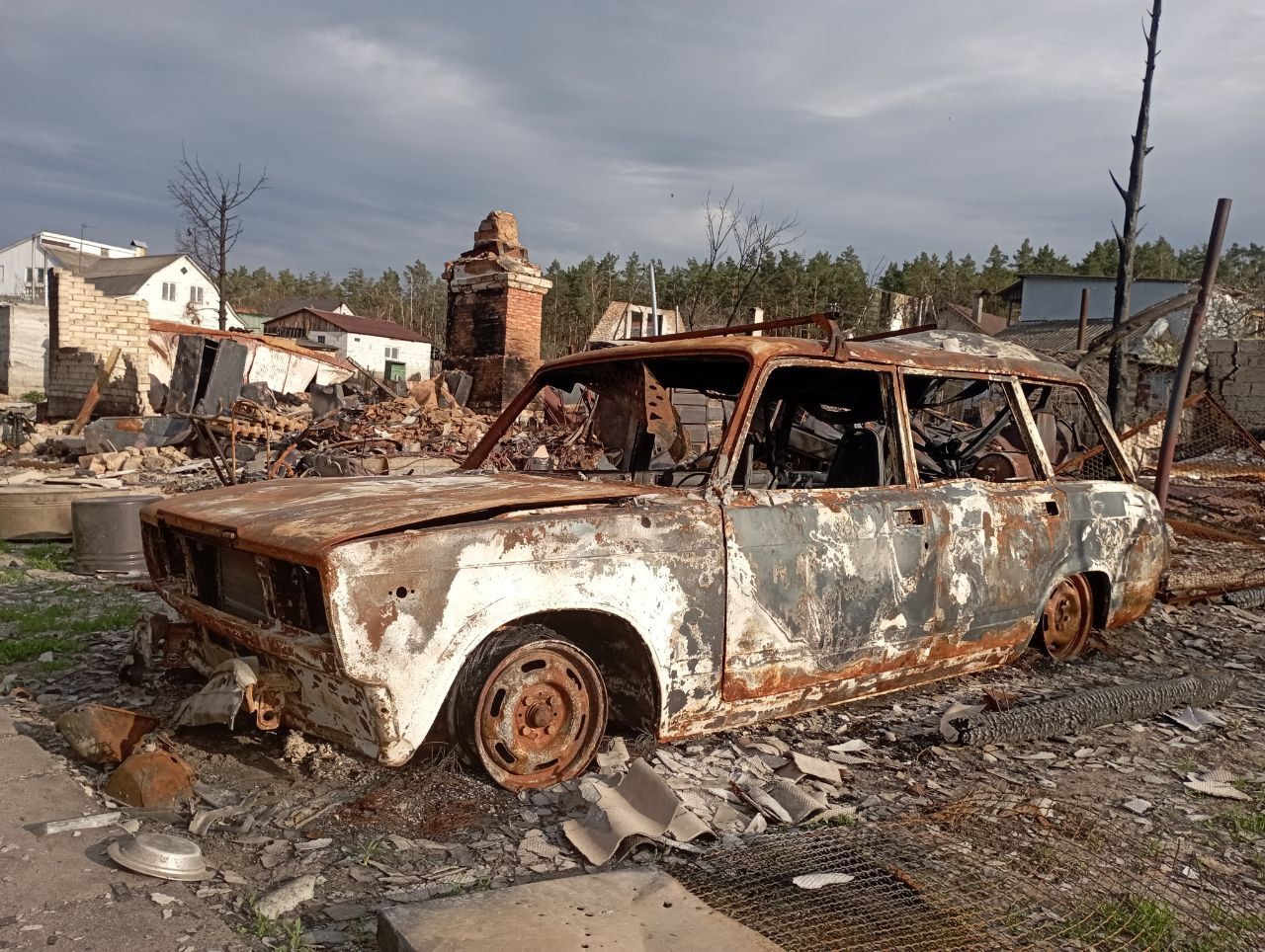Уничтоженные автомобили в селе Мощун Киевской области