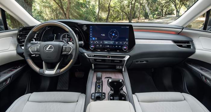 Lexus RX 450h+ оснащен 14-дюймовым сенсорным мультимедийным дисплеем и мощной аудиосистемой Mark Levinson Premium Surround Sound с 21 динамиком, которая оптимизирована под внутреннюю архитектуру автомобиля и учитывает любые внешние шумы и обеспечивает качественное звучание. Эта система включает 20-сантиметровый сабвуфер, расположенный в багажнике сбоку. В Lexus RX 450h+ можно сохранить желаемые настройки аудиосистемы и навигации для трех пользователей и персонализированные настройки для положения сиденья водителя, освещения салона, панели приборов и тому подобное.