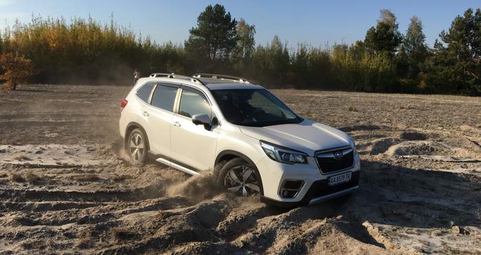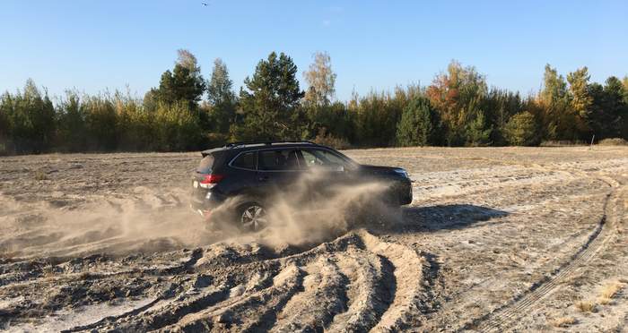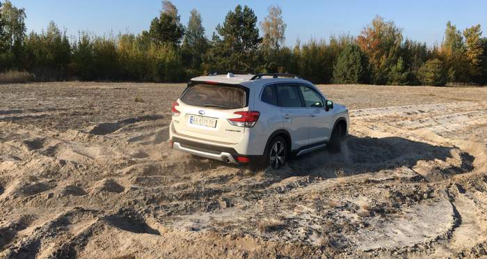 На бездорожье мягкая подвеска также пригодится. Она плавно и осторожно преодолевает препятствия, сохраняя комфортное пребывание пассажиров в салоне. Как и все Subaru, новый Forester чувствует себя на бездорожье как рыба в воде. Журналисты загнали автомобиль на песчаную почву, где дрифтовали и развлекались, как могли. И автомобиль ни разу не закопался и даже не дал повода сомневаться в том, что может не выбраться с рыхлого покрытия. Клиренс в 220 мм обеспечивает проходимость настоящего внедорожника – несмотря на наличие глубокой колеи и массы выбоин в течение тест-драйва в лесу мы ни разу не задели дно машины.