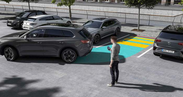 Еще одна дополнительная высокотехнологичная функция доступна для Touareg R eHybrid: Park Assist Pro, подготовленная для дистанционного управления парковкой. Он позволяет контролировать процесс заезда и выезда из парковочных мест со смартфона (через Volkswagen App), а также может использоваться на очень тесных парковочных местах.