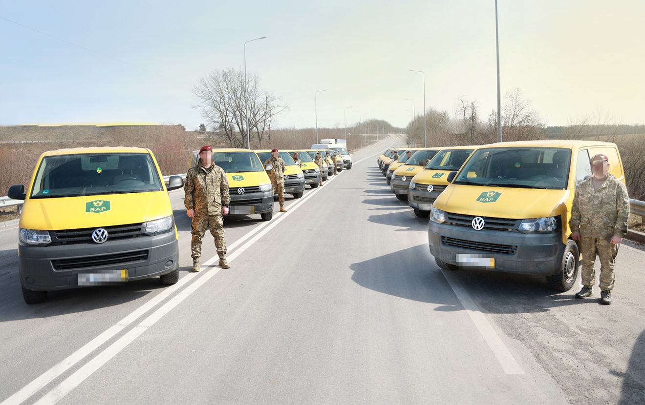 Полтавский пакет помощи из 10 фургонов для подразделений Десантно-штурмовых войск ВСУ также был из "течиков" желтого цвета. Фото: ВАР