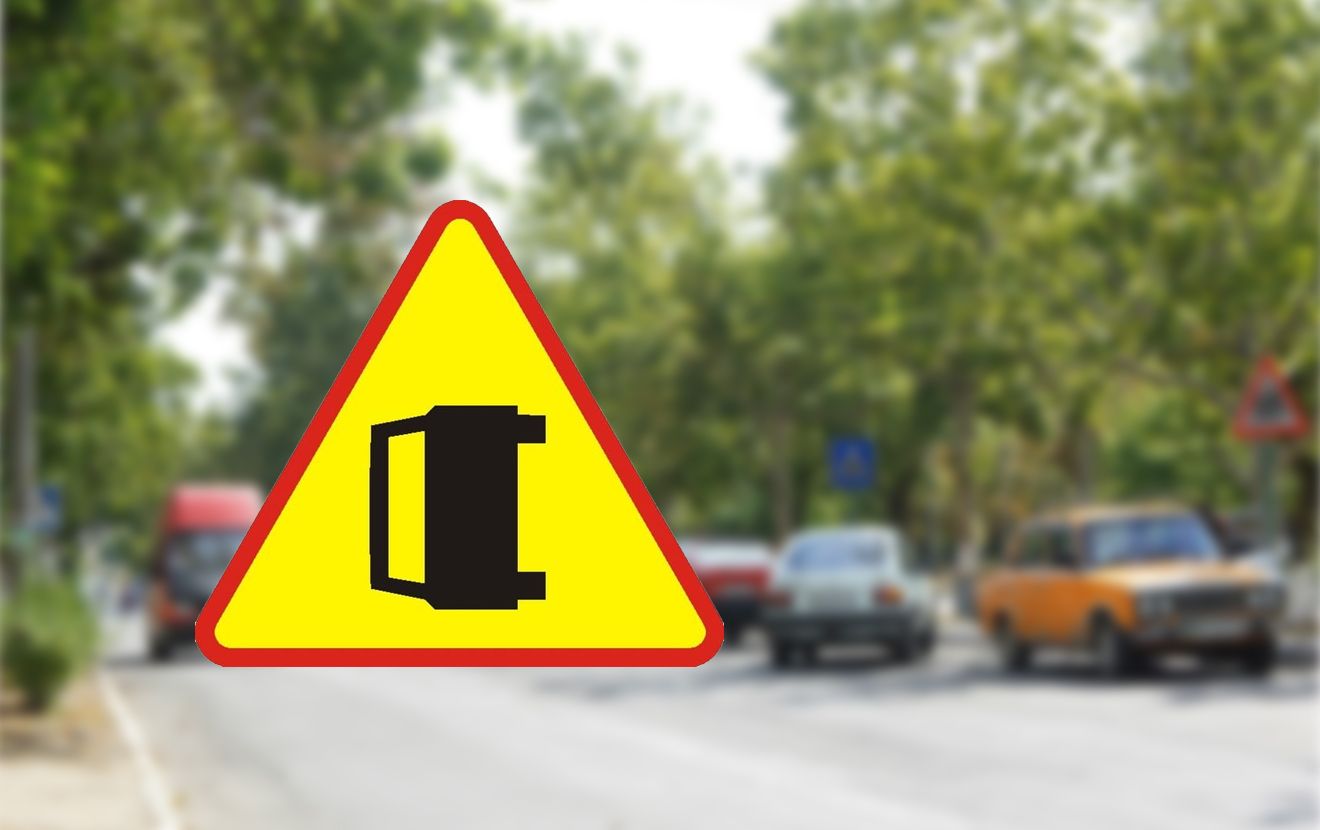 На польском знаке пиктограмма размещена четко по центру треугольника и строго вертикально. Коллаж: Авто24