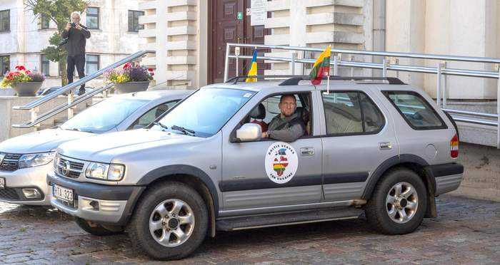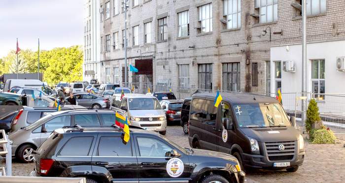 А у Каунасі на пагорбі біля церкви Воскресіння Христа литовська команда доєдналася з парком із 38 машин, хоча спочатку передбачалося, що в Україну вирушить близько 20.