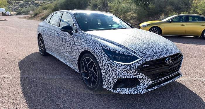 Хоча на фотографіях автомобіль закамуфльований, це не шпигунські знімки – їх оприлюднив американський підрозділ марки Hyundai. Більше того, закамуфльований прототип Hyundai Sonata N-Line дали протестувати місцевим журналістам.