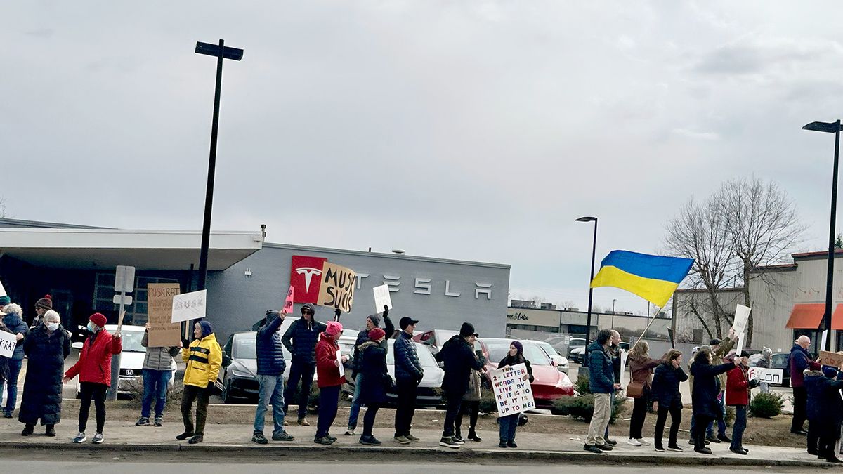 Протестувальники неподалік одного з офісів Tesla поблизу Бостона