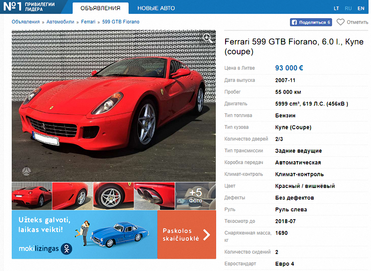 - Аutobonus.lt – Знову ж таки: велика кількість оголошень, зручний інтерфейс, фільтри для підбору, можливість відображення російською мовою, та цінники у євро.
