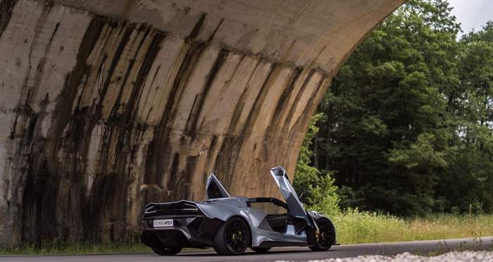 Tushek TS 900 H Apex (навіть не намагайтесь запам’ятати) оснащений трьома двигунами. Задні колеса приводить в рух знайомий агрегат від “Ауді” – 4,2-літровий V8, а передні колеса обертає пара електромоторів. Загальна потужність установки, за данними виробника, становить 937 к.с. та 1400 Нм.