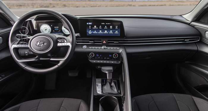 Загалом внутрішній простір Elantra тепер зовсім не нагадує про попередника – в інтер’єрі, особливо довкола водія, змінилось усе. В базовій комплектації (для США) нова Elantra матиме 8-дюймовий дисплей мультимедійної системи, однак з можливістю підключати смартфони через Apple CarPlay та Android Auto. Опційно буде доступна пара 10,25-дюймових сенсорних моніторів – для мультимедійного центру та панелі приладів. Передбачені також голосове управління і акустика Bose.