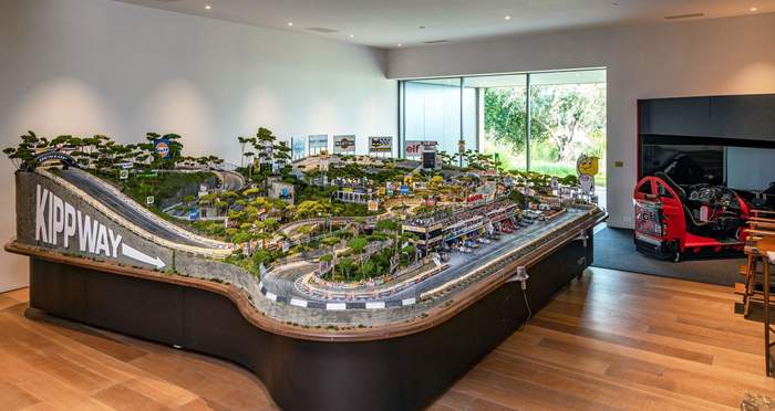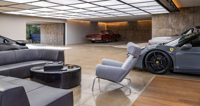 Приміщення для автомобілів у цьому будинку – радше автогалерея, ніж гараж. У ньому також є мініатюрний гоночний трек та гоночний симулятор.