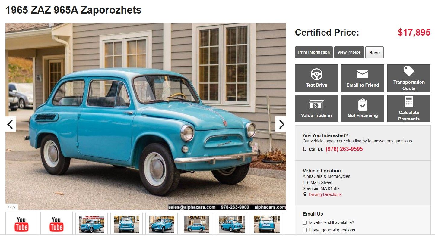 Фото: продаж ЗАЗ 965 у США / ТопЖир/AlphaCars