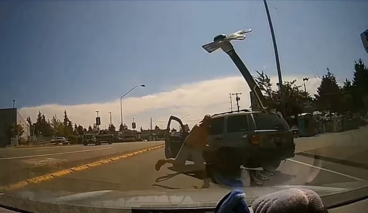 Q13 Fox Seattle повідомляє, що на відео показано кульмінацію інциденту, який почався, коли автомобіль з відеореєстратором з’їжджав з автомагістралі й до нього у відкрите вікно почав волати водій позашляховика. Перший намагався уникнути конфронтації, але водій позашляховика почав його переслідувати. Зрештою агресивний водій позашляховика підрізав власника реєстратора, перекрив дорогу та кинув теслярський молоток у лобове скло автомобіля. На щастя, ніхто не постраждав.