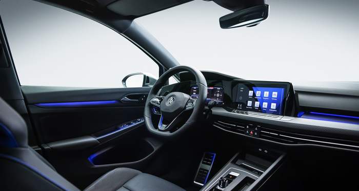 Інтер’єр оновився більше в технічному плані. Здвоєні екрани звичайного Golf були адаптовані до специфічної R-графіки. Кермо відрізняється від GTI, а крісла за замовчуванням обтягнуті шкірою.