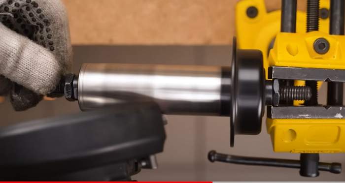 На фінішному етапі проведено взування. Цей процес також виявився трудомістким. Кожен капець кріпився до вигнутої пластини личака чотирма болтами з гайками. Зрештою, вийшов великий млин з капцями, що відтворив "інноваційне" колесо.
