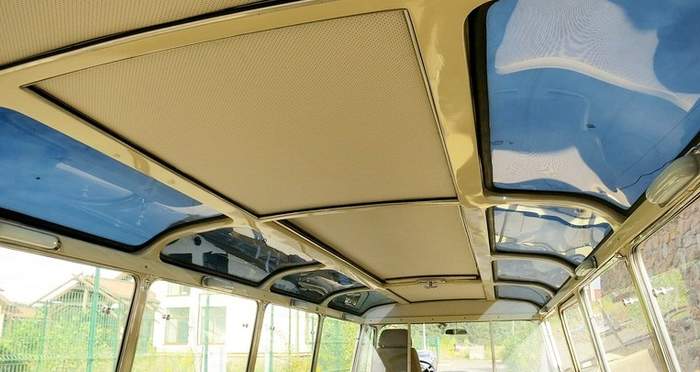 Отже, все вищесказане – лише прелюдія, головне в цій машині – її унікальна концепція. Завдяки використанню шасі представницького лімузина ЗІЛ-111 автобус вийшов незвичайно комфортабельним – з плавним ходом та “легковою” динамікою. При цьому він має просторий салон із багатим оздобленням, в якому, однак, головна (і технічно дуже складна!) відмінність – велика площа вікон та величезний люк у даху.