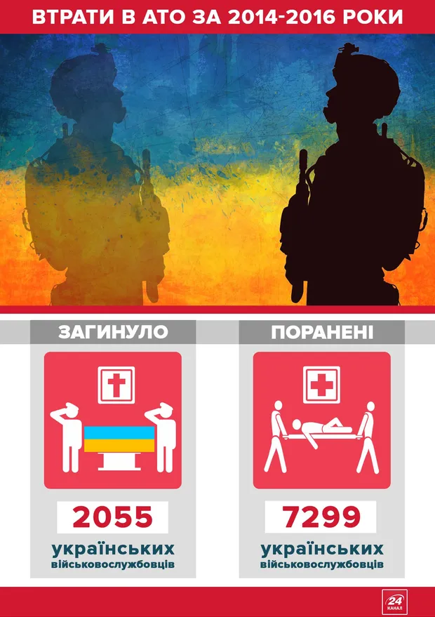 "За ці два роки в підрозділах МВС і Нацгвардії: загинули 308 осіб. У тому числі з добробатів — 205 (108 — нацгвардійці з Донбасу, Азова, батальйон ім. Кульчицького, 97 — з батальйонів МВС). Отримали поранення 1228 людей. В тому числі зі складу добробатів — 701. Пропали безвісти — 41 боєць. У полоні (за нашою інформацією) — 10", — повідомив Аваков.