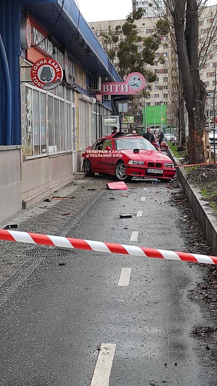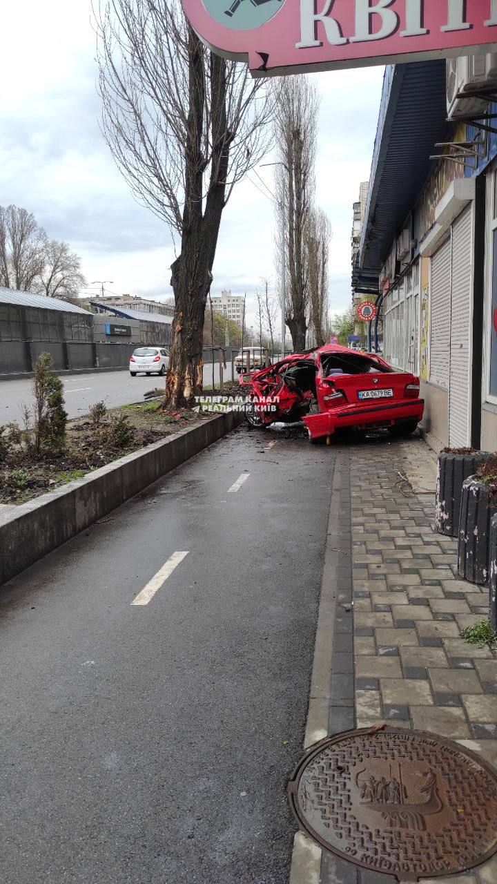 Ще одна ДТП у суботу 6 квітня сталася на вулиці Борщагівській у мікрорайоні Київського політехнічного інституту – там водій BMW влетів у дерево та зупинився аж біля кіосків.