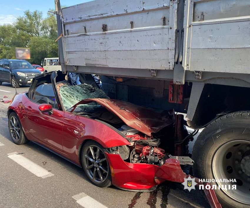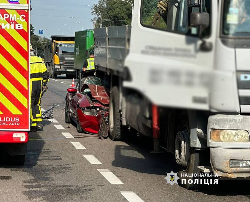 Водій авто Mazda врізався у вантажівку в столиці / Фото поліції Києва
