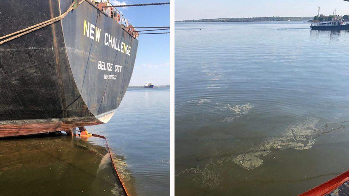 Витік соняшникової олії в порту Миколаєва / Фото з фейсбука Андрія Мальованого