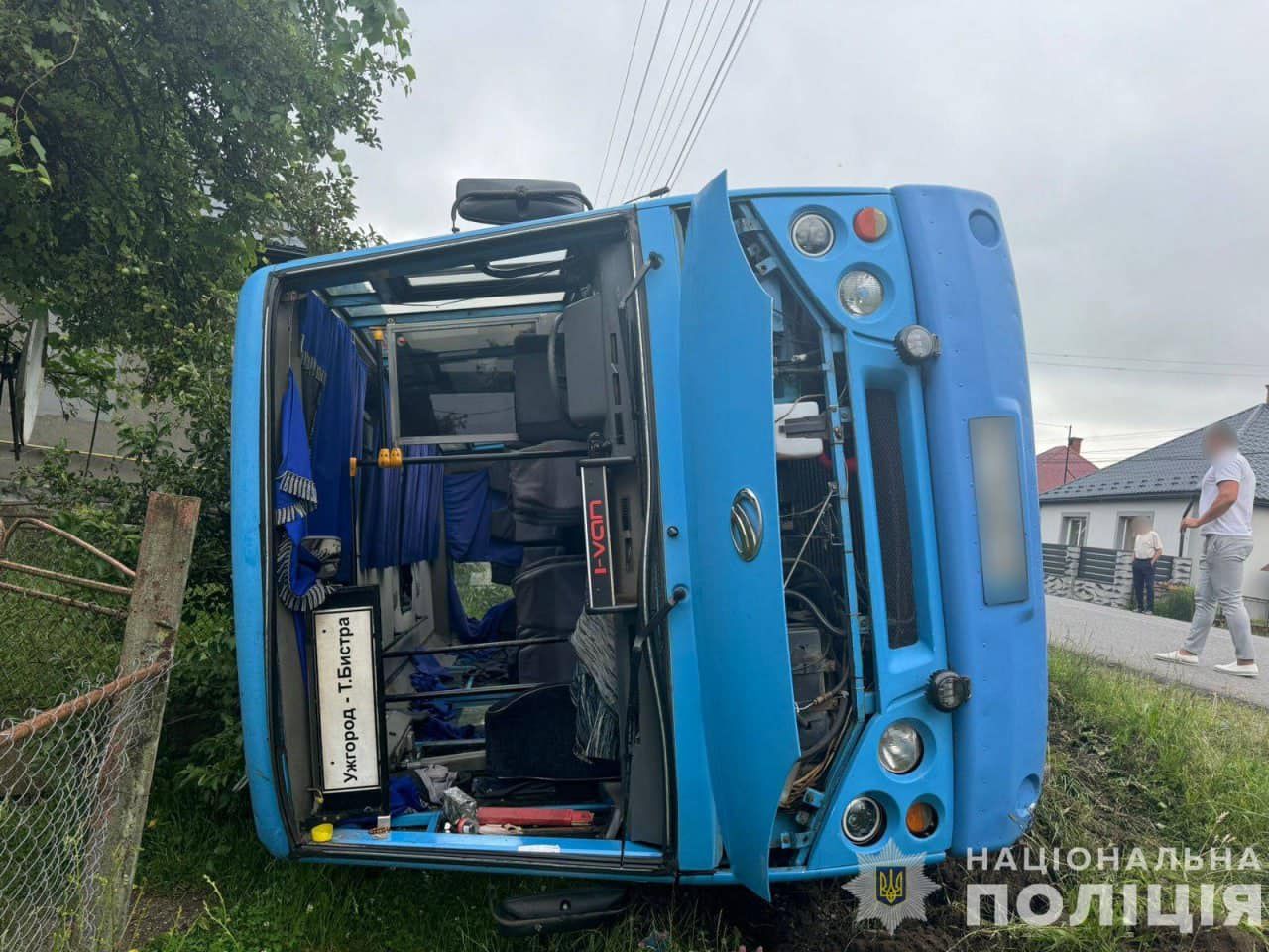 На Закарпатті перекинувся автобус із пасажирами / Фото поліція Закарпатської області