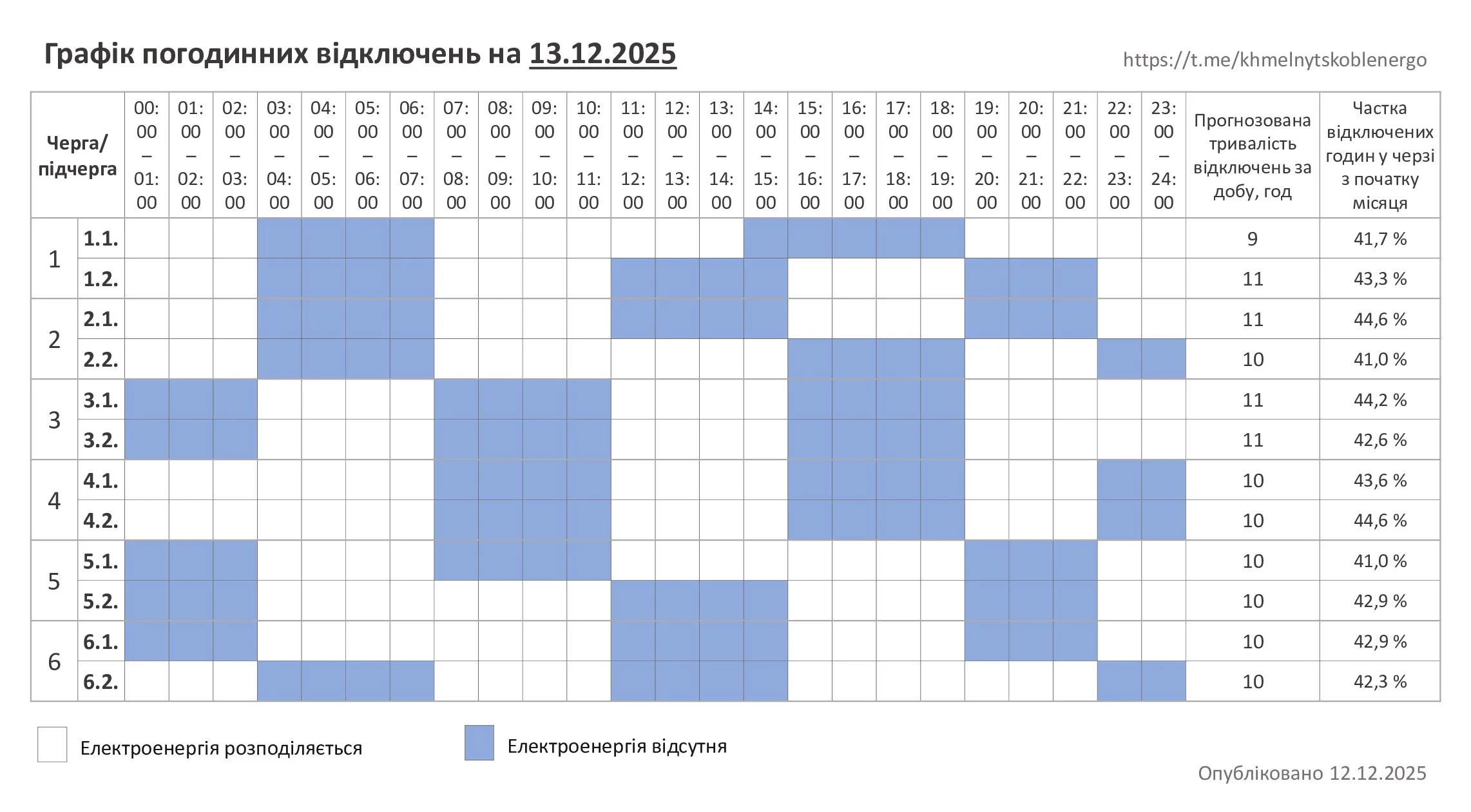 Переглянути графік відключень світла на Хмельниччині можна на офіційному сайті АТ "Хмельницькобленерго". Для цього потрібно ввести адресу або переглянути загальний графік за чергами.