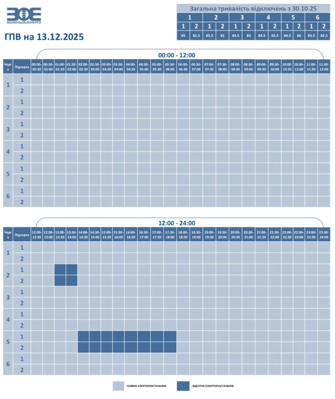 Луцьк і регіон також матимуть погодинні відключення 14 грудня.