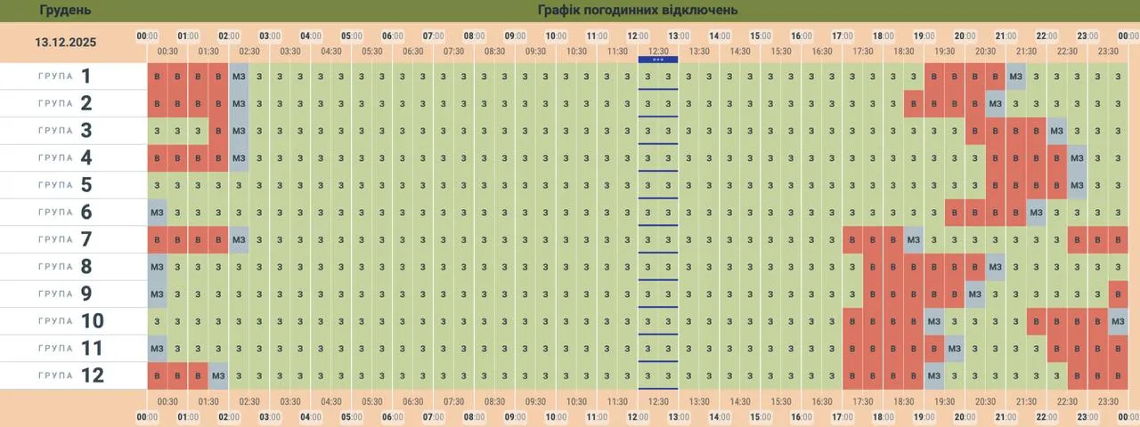 14 грудня по Запорізькій області діятимуть графіки погодинних відключень (ГПВ).