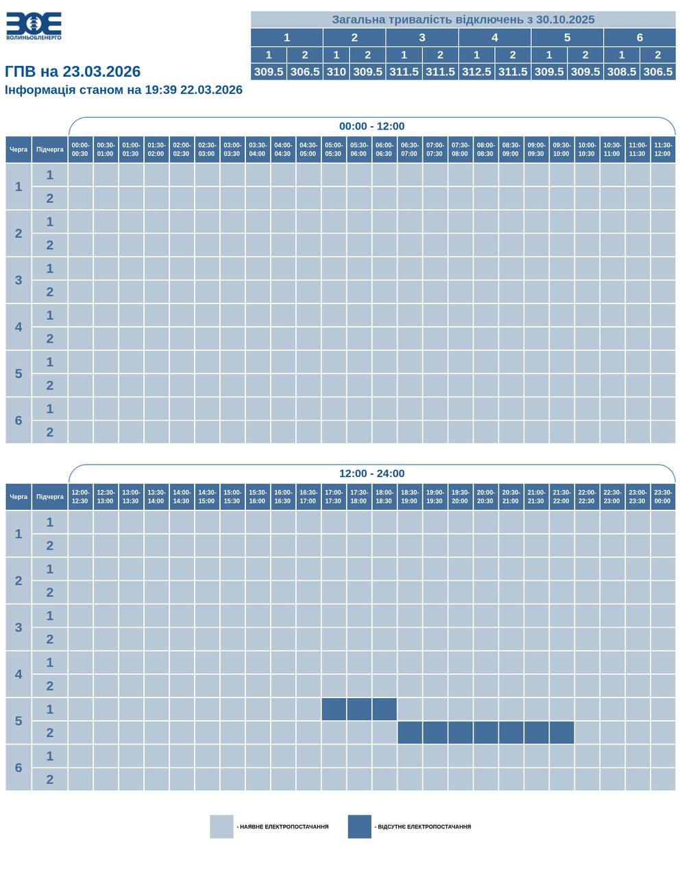 Зверніть увагу! Час застосування й обсяг обмежень упродовж доби можуть змінитися. Актуальну інформацію про графіки відключень дивіться на сайті чи офіційних сторінках обленерго в соцмережах. Коли світло з'явиться за графіком, споживайте електроенергію ощадливо.