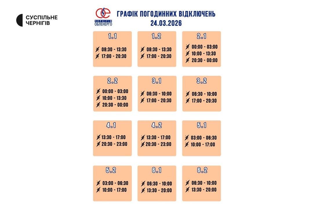 Детальніше про те, як вимикатимуть світло на Чернігівщині, можна дізнатися за посиланням. З'ясувати, до якої черги належить будинок, можна, зайшовши на сайт Чернігівобленерго або допомогою чат – ботів у Viber і Telegram.