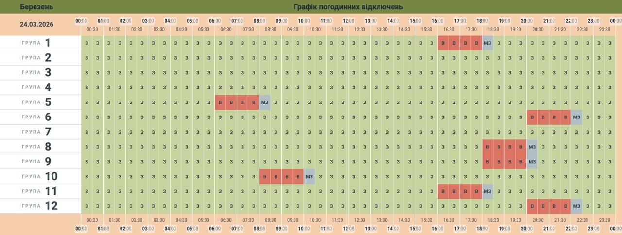 Через постійні ворожі обстріли та наслідки попередніх масованих ракетно-дронових атак по Черкаській області 24 березня за командою НЕК "Укренерго" застосовуватимуть графіки погодинних вимкнень (ГПВ).