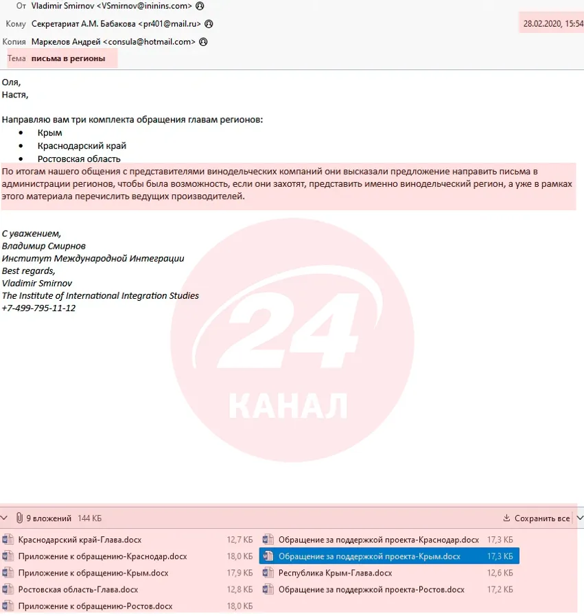 Доказ ймовірної афери Бабакова на 2 мільярди рублів / Скриншот із пошти заступника керівника держдуми