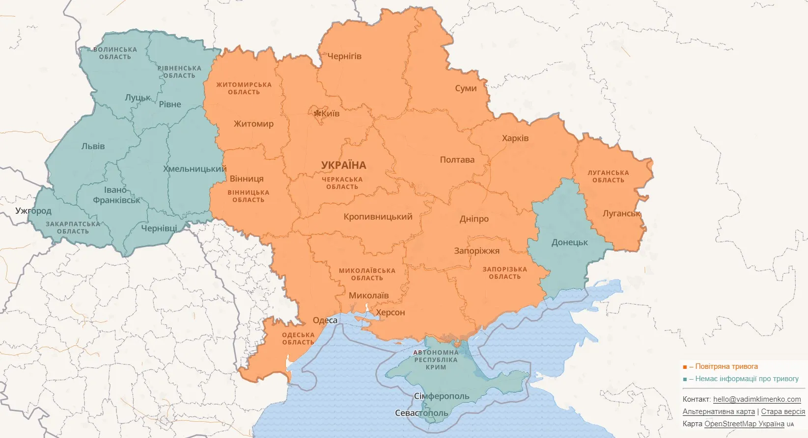 Спершу повітряну тривогу оголосили у Південних та частині центральних регіонів. Сталося це приблизно о 5:50.
