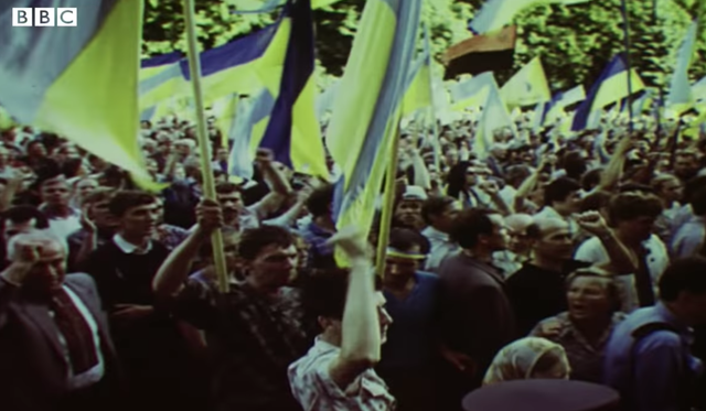 У липні українці влаштували багатотисячний марш київським Хрещатиком. Вони крокували, одягнені у національний одяг та тримаючи синьо-жовті прапори. Щоправда, "радянські залишки" ще відчувались – керівництво Комуністичної партії УРСР несло квіти до пам'ятника Леніну.