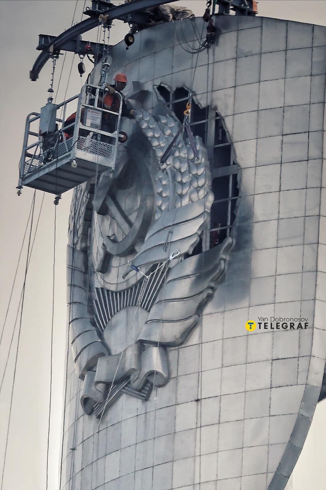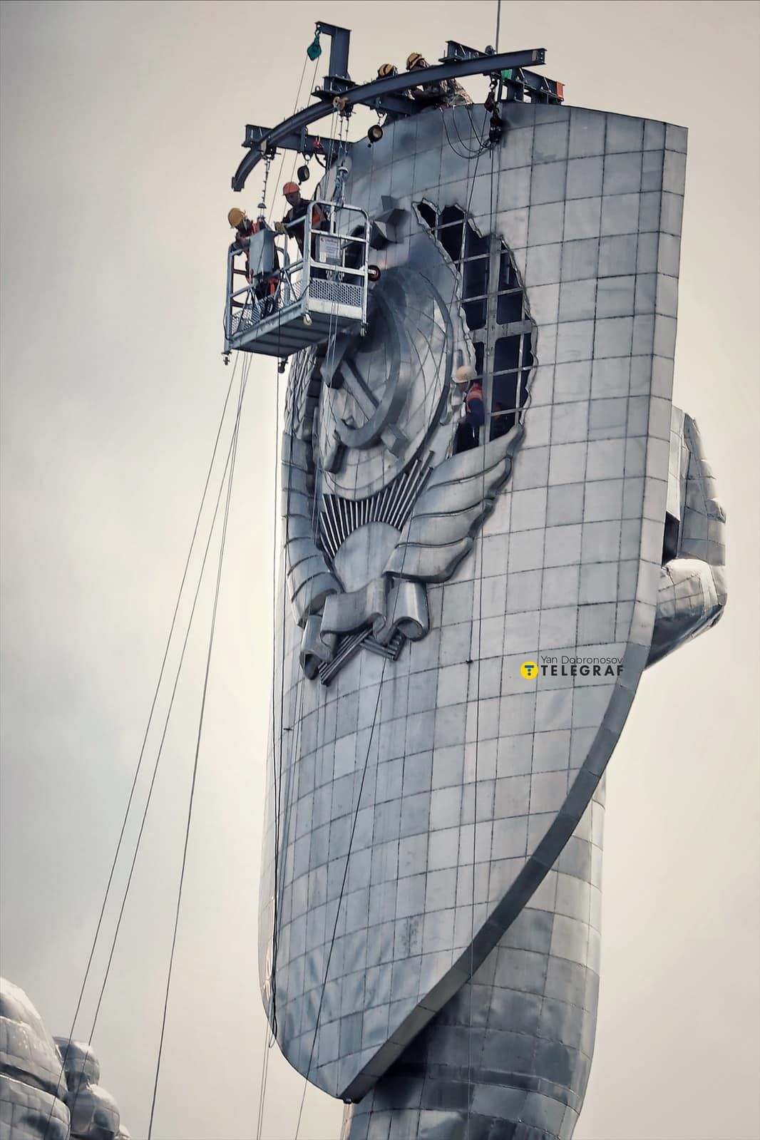 Як відбувається демонтаж радянського символа / Фото Ян Доброносов і Мінкульт