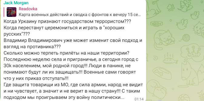 У місцевому пабліку істерика та нарікання розносяться з нечуваною швидкістю. Схоже, росіяни перелякані не на жарт. Але зробити вони нічого не можуть. Лише не розуміють, де ж їхні "защітнікі" з "второй армії міра". Ті самі, які безсоромно тікають з України.