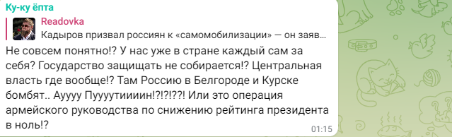 Паніку з натяком невдоволення розвели у соцмережах головний пропагандист кремля владімір соловйов та йому подібні. Мовляв, треба мобілізовувати техніку в прикордонних районах, заривати оборону глибоко. Бо ж "війна прийшла в наш дім". Ба більше, вони не розуміють, хто ж це так накомандував, і як так, що Київ збирались брати за три дні, а через пів року окопи треба рити в себе. Але в кінцевому результаті пропагандисти зводять все до того, що розбиратися будуть потім.