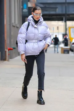Хадід з’явилася на вулиці у куртці моделі Michlin в ніжно-бузковому відтінку. Ціна цього пуховика – 1295 євро (понад 42 тисячі гривень).